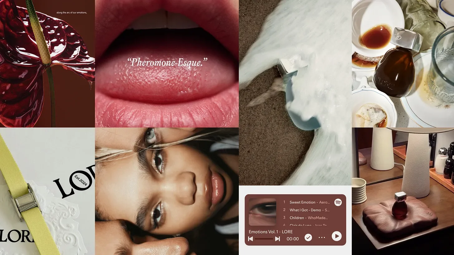 Lore answers this by building an emotional world. None of it spells out what the fragrance smells like, yet all of it tells you what it feels like to be someone who wears it.